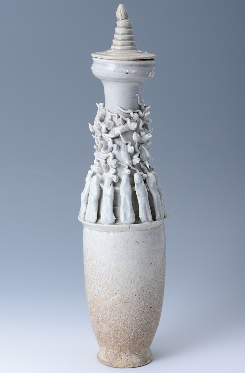 南宋青白釉堆塑云龙十二神带盖魂瓶