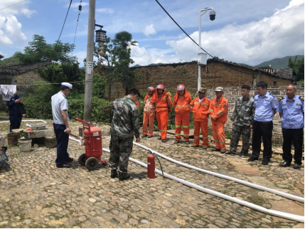 在赖坊镇检查时,熊利参谋还突击进行火灾报警、接警、处警演练,召集镇防火队迅速到赖坊建筑群指定地点集合,计算出警时间,并对防火队员是否能正确使用灭火器、消防栓等设施进行检查和培训。